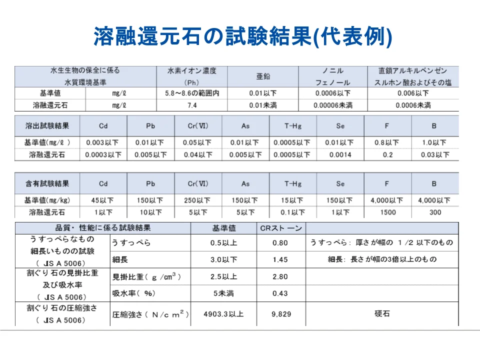 溶融還元石の成分試験結果→https://kangenyouyu.org/product/stone/