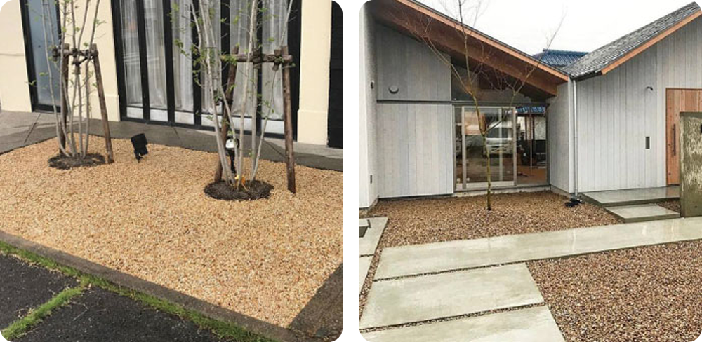 砂利を全面に敷き詰めます。短い工期でお庭の見た目を変えたい方におすすめです。